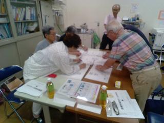 朝、西門では、トンボが何匹も気持ちよさそうに飛んでいて、まだまだ日差しは強いですが、日ごと秋を感じさせます。今日は子どもたちが下校後、避難所運営会議を開催しました。避難所とは、ご存知の通り、地域の皆様で、地震等の災害により、家屋が倒壊や焼失などの被害をうけたり、その恐れがあったりする方を受け入れる施設のことです。その管理運営にあたる皆様が一堂に会しました。本校の避難所運営マニュアルを確認した後、多摩区役所危機管理担当の方から、携帯トイレの使い方を教えていただきました。災害時のトイレは深刻な問題になる場合があります。次に、委員の皆様で、「避難所運営ゲームHUG」を行いました。避難者個々の事情が書かれたカードを避難所に見立てた図面の上に配置したり、避難所に起こる様々な出来事に対応したりしながら、避難所運営の在り方を参加者全員で考えていくゲームです。机上のゲームとはいえ、受付をどこにするのか、自動車で来た人をどうするかなど、様々な状況に対応しなければならないことがわかりました。でも委員の皆様は、様々なアイデアを出しながら、それぞれの避難者に対応しようとされていて、ありがたく思いました。備えあれば憂いなしですね。ありがとうございます。