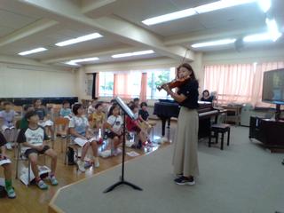 今日は夏が逆戻りのような天候で、子どもたちも「暑い暑い」と話していましたが、校舎内は「あつい」授業が続いています。4年生は体育館で社会科「二ヶ領用水」の学習でした。市民ミュージアムの職員の方がゲストティーチャーです。実際に昔の人になりきって、石を運んだりする模擬体験をし、当時の工事の様子について考えることができました。3年生は音楽で「メヌエット」の旋律の特徴の違いについて考える学習でした。バイオリンが堪能な本校の事務職員がゲストティーチャーです。生の演奏を初めて聞いた子が多く、バイオリンの構造に関心を持っている子もいました。このようなゲストティーチャーについては、これまでも紹介してきましたが、その手の専門の方から話を聞いたりすることは、子どもたちの学習にとって大変有意義なことです。これからも「あつい」授業ができたらなと思います。