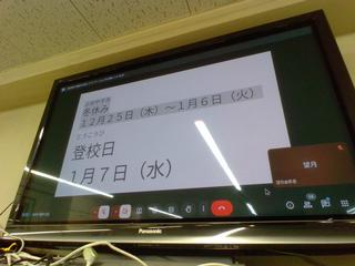 今日は冬休み前最終日です。8時30分から特別朝会のはずでしたが、諸事情により、給食の時間に「特別昼会」を開きました。子どもたちには、10月に後期がスタートしてからここまで、学校で頑張ったこと、嬉しかったことをおうちの方に伝えてください、と話しました。子どもたち一人一人にそれぞれの視点で感じた頑張ったことや嬉しかったことがあるはずです。ぜひ耳を傾けていただけるとありがたいです。私は、たくさんの子どもたちから話しかけられたこと、たくさんの子どもたちが校長室に来て、いろんな話をしてくれたことが嬉しかったです。そして何よりも子どもたちの成長の様子が見られたのが、とっても嬉しかったです。会の最後には、担当から「冬休みの生活」について話をしました。来たる1月7日(水)、元気に登校してくださいね。