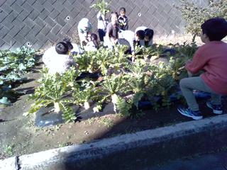 地域の農家の方と一緒に大根の収穫をしました。大根の太さや葉の大きさに驚いていました。