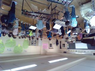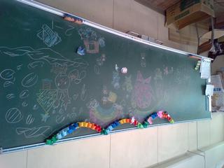 教室前の廊下には、書写で書いたスイミーの視写と、図工「まどをあけたら」が飾られています。個人面談の待ち時間等にぜひご覧ください。