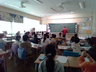 栄養士の加藤先生が「やさいパワー」について授業をしてくれました。