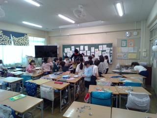 第一回ワンツーフレンズ交流会を行いました。たてわり活動の班でグループになり、自己紹介をしながら手作りの名刺を交換しました。「帰ったらお母さんに見せよう!」「大切に連絡帳袋にしまおう」と、もらった名刺を握りしめながら教室でうれしそうに話していました。その後は2年生の考えた遊びで仲を深めました。1年生を前にした2年生はいつもより少しお兄さんお姉さんに見えました。どんな名刺をもらったのか、どんなお話をしたのか、ぜひ家で話題にしてみてください。