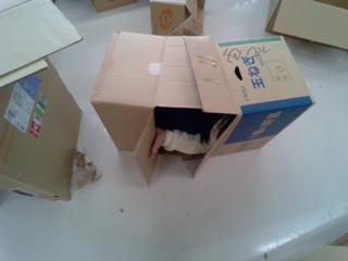 袋状のクラフト紙をくしゃくしゃにして、中に新聞紙などを詰めているところです。