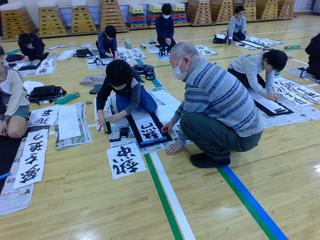 本日は、地域の金丸さんをお呼びして書き初めを行いました。