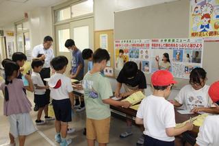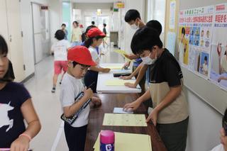 「やったー!」と声を上げて嬉しそうに受け取けとっていました。中には、首にかけたまま嬉しそうに下校する子も。