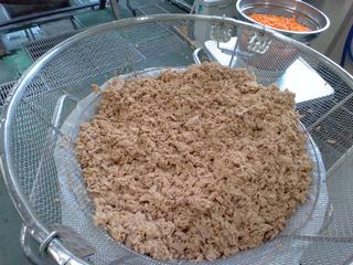 写真は10月6日の「ツナそぼろごはん」のツナを開けたものです。この缶詰めが8缶、入ったよ。