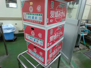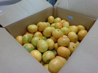 10月17日のみかんです。えひめけん(愛媛県)の赤箱みかんです。「愛媛の赤箱」は、主に西宇和という地域でさいばい(栽培)されている高級なみかんです。厳しい基準をクリアした果実のみが「赤箱」として販売されて、ひんしつ(品質)が高いみかんです。