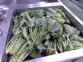 画像は10月21日の「やさいソテー」に入った、ほうれん草です。旬の野菜のほうれんそう、寒さに当たることで甘みが増えて、ビタミンCなど栄養価も高くなってくるよ。