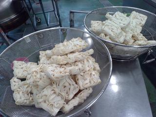写真は9月25日、今日の「ちくわのいそべあげ」のちくわです。納品されてから、6分の1に切って衣をつけて揚げます。