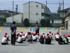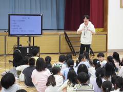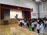 4年生が体育館に集まって・・・オリエンテーション?していました。