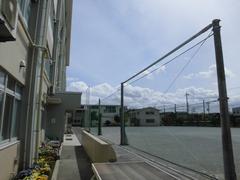 3月末に校庭と校舎の間に防球ネットが設置されました。安全に楽しく、校庭で遊んでほしいです!図書室に新しい本が届きました。外国の絵本が多くありました。同じ絵本でも日本語と外国語ではちょっと違うかもしれませんね!お楽しみに!