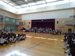 今まで学校のためにがんばってきた6年生のために、1年生から5年生が出し物をしたりプレゼントを渡したりしました。