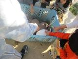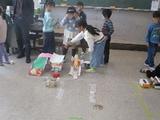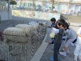 1年生の移動動物園です。たくさんの動物たちにさわったりえさをあげたりして大喜びの1年生です。
