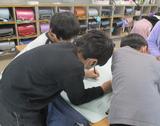 3年生は式典で自分たちがつくった歌を全校に広めようと活動しています。「各クラスに配る」ために歌詞を一生懸命書いていました。
