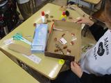 1年生が秋をたくさん集めて楽しい遊びを考えていました。迷路やコマ、かざりと思い思いの作品を工夫してつくっていました。