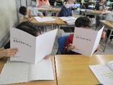 火曜日の朝は学年タイムです。どの学年も学年ごとに活動します。1年生は○×クイズ、2年生は町探検の準備、3年生は体育館で集会、4年生はミート集会、5,6年生は学年集会での話し合いをしていました。
