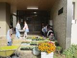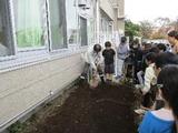 休み時間に2年生が花を植える準備をしていました。土を運んだり花壇を耕したりと自分たちでどんどん進めていました。