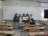3年生は式典で自分たちがつくった歌を全校に広めようと活動しています。「各クラスに配る」ために歌詞を一生懸命書いていました。