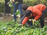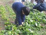 今日も5年生が小松菜を収穫していました。給食では使い切れないぐらいたくさんとれたのでおうちに持って帰ることにしました。職員室にもお裾分けをいただき職員は大喜びでした。
