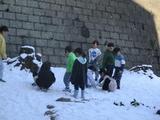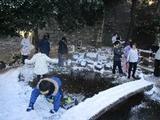 1年生が雪の残る池の周りで遊んでいました。池の氷をつま先でそっとつついたり雪だるまをつくったりと楽しそうでした。「もっとたくさん雪が残ってればいいのに」という声に「そうだねえ」と答えながら、「道が凍っていなくて本当によかった」と思いました。