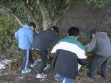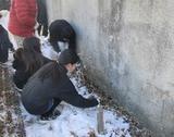 6年生の清掃活動、今日は西長沢公園です。雪の残る中、草取りや石拾い、整地等を行いました。6年生はよく働きます。
