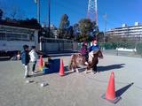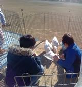 当日は寒い風が吹く日でしたが、子どもたちと動物たちは広い校庭の一角でのんびりとふれあいを楽しみました。
