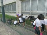 クリーン作戦として、6年生は校舎周りの雑草抜きに取り組みました。「学校をきれいにするために!」という意欲のもと、一人ひとりが黙々と雑草を抜き取りました。用意したごみ袋が満杯になるまでやり切り、達成感を得ていました。