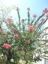 なんと、1年生の朝顔が、まだきれいに花を咲かせ、夏から秋にかけて100日間も咲くというサルスベリ(別名 百日紅)の花もまだきれいに青空に映えていました。