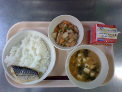 給食室で、かつお節の厚けずり節と昆布をたっぷり使い、朝から時間をかけてゆっくり煮出したおいしい出汁をしっかり味わえる献立でした。