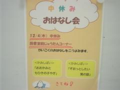 中休み図書コーナーでは、図書館司書さんと図書ボランティアの方によるおはなし会が開かれました。