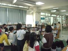 7月15日(火)には中休みにも、図書コーナーで「おはなし会」をしてくださいました。