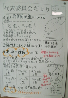 先週12日(金)から計画委員会による「赤い羽根の共同募金」と「あいさつ運動」が行われています。