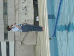 プールサイドに日除けのネットを用務員さんが設置してくれました。