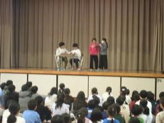 中休みには給食委員会が給食の食べ方などについて、劇で発表しました。