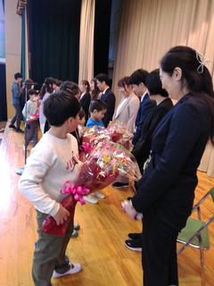 6年生からも各学年にメッセージをもらい、花のアーチで6年生を見送りました。
