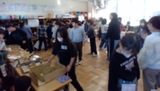 この場面は、1年生の教室で、生活科の季節遊びを教えてもらい、共に楽しむ3年生です。