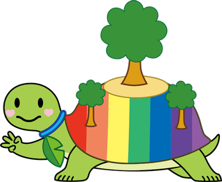 全校でアイディアを出し合って学校で飼っている亀の「タトル」をモチーフにキャラクターにしました。