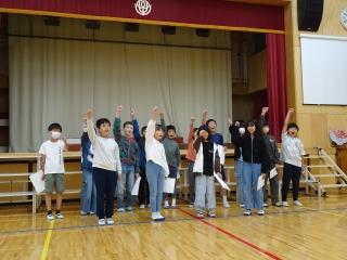 令和6年度の5年生と先生たちで作詞作曲しました。「虹のしあわせ ずっと続くよ どっこまでも」のスローガンから虹ヶ丘のよさを歌詞に詰め込みました。