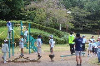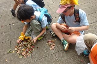 たてわり班ごとに分かれて、王禅寺ふるさと公園にあるたくさんのデザインマンホールを探したり、落ちている葉っぱや木の実で「50」の数字をつくったりなどのミッションを楽しみました。