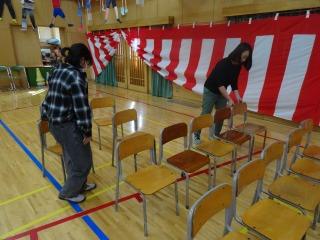体育館は、椅子などを全て片付けてから床をきれいにして、また椅子などを並べ直しました。