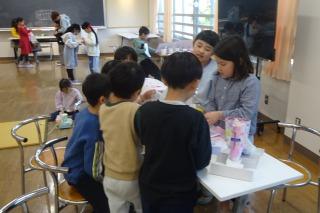 1年生を招待して、自分たちで作ったおもちゃで遊んでもらいました。