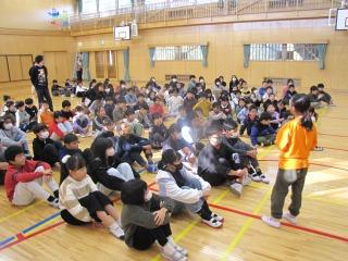 来月に実施されるる1・2・3遠足に向けて、123年生で集まって集会をしました。