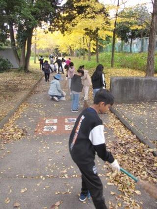全校児童と地域のおやじの会の方々と保護者のボランティアの皆さんで虹ヶ丘公園の清掃活動を行いました。