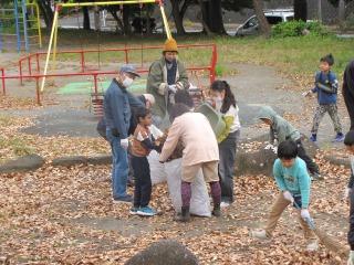 公園の砂場には大量の落ち葉が落ちていて、砂場の砂が見えない様子だったのですが、清掃後には砂場が使えるようになっていました。