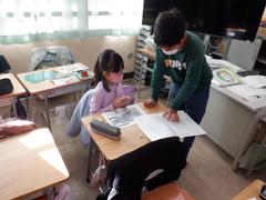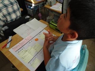 まずは、自分で集めた情報を整理して、次に友達と話して、友達の考えと比べたり、同じところを探したりして自分の考えを深めました。