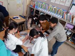 総合では、虹ヶ丘のまちの幸せをつくっている施設や人について学習しています。学校の中にある「コミュニティ」では、どんなことをしているのか実際に行ってきました。本の読み聞かせや座ったままできる体操、ちぎり絵など利用者の方々とお話しをさせてもらいながら体験することができました。