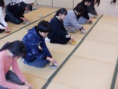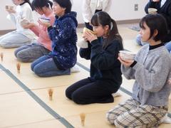 季節のお菓子(雪景色)を食べてから、お茶を飲むなど、茶道での作法を学ぶことができました。