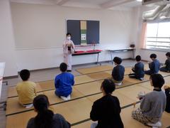子どもたちは、正座をしながら、背筋を立てて、三田先生のお話を聞いていました。