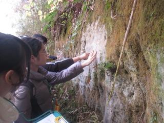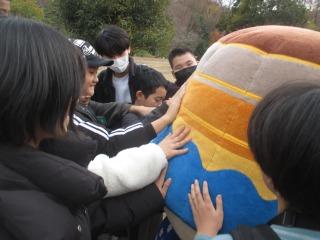 生田緑地へ地層見学に行きました。きれいな紅葉を見ながらの散策になりました。マスコットキャラクターのプリンちゃんにも出会うことができました。実際に地層を見たり、手で触ったりして、場所による地層の違いを発見しました。地層のでき方や広がり方も教えていただき、新たな発見がありました。